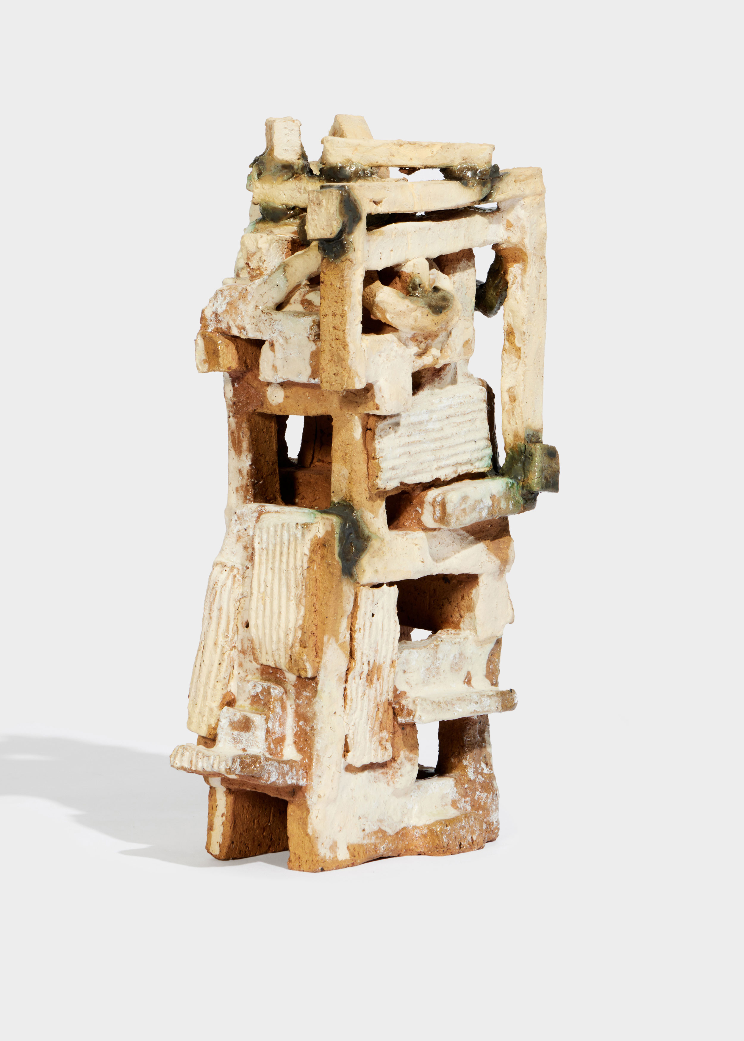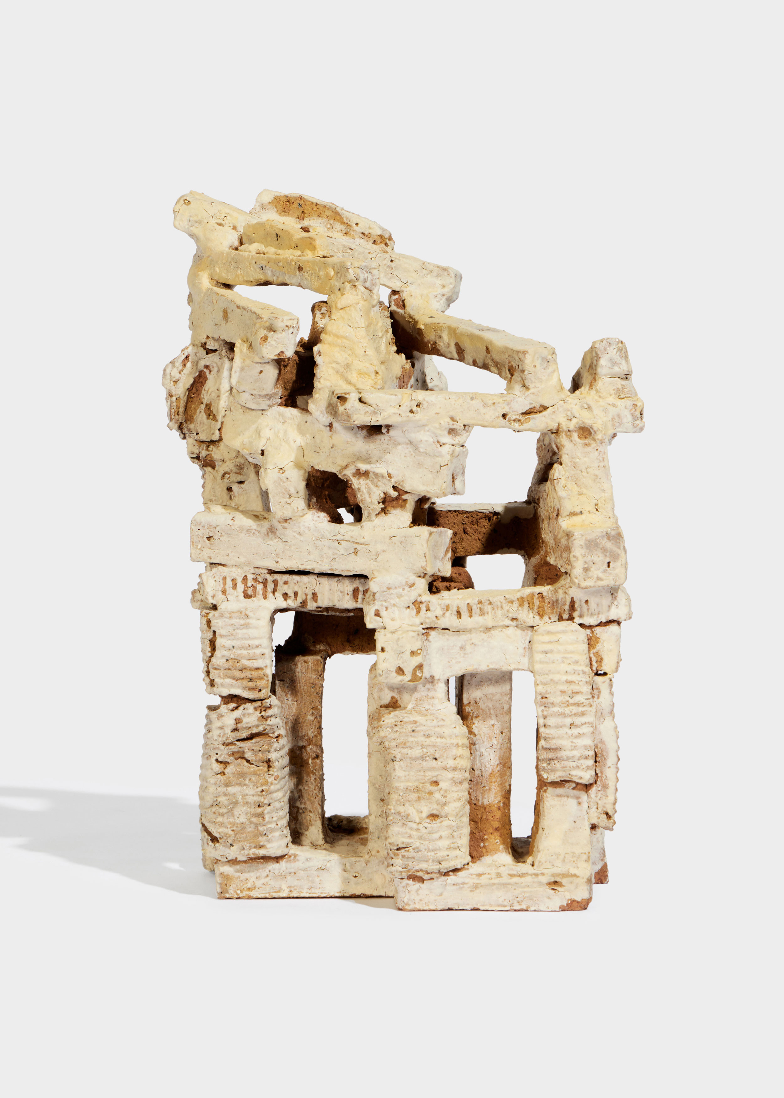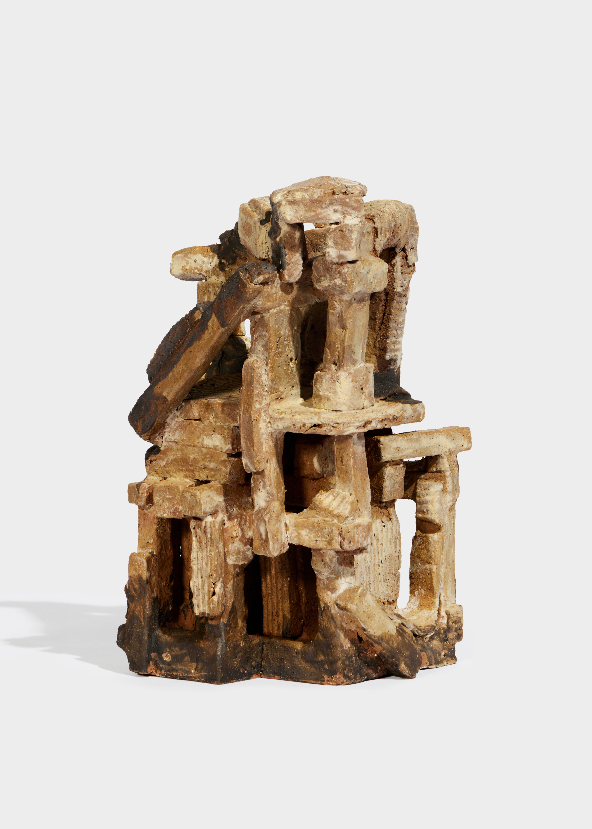 and instinct. His sculptures, forged from raw clay, reflect the tension